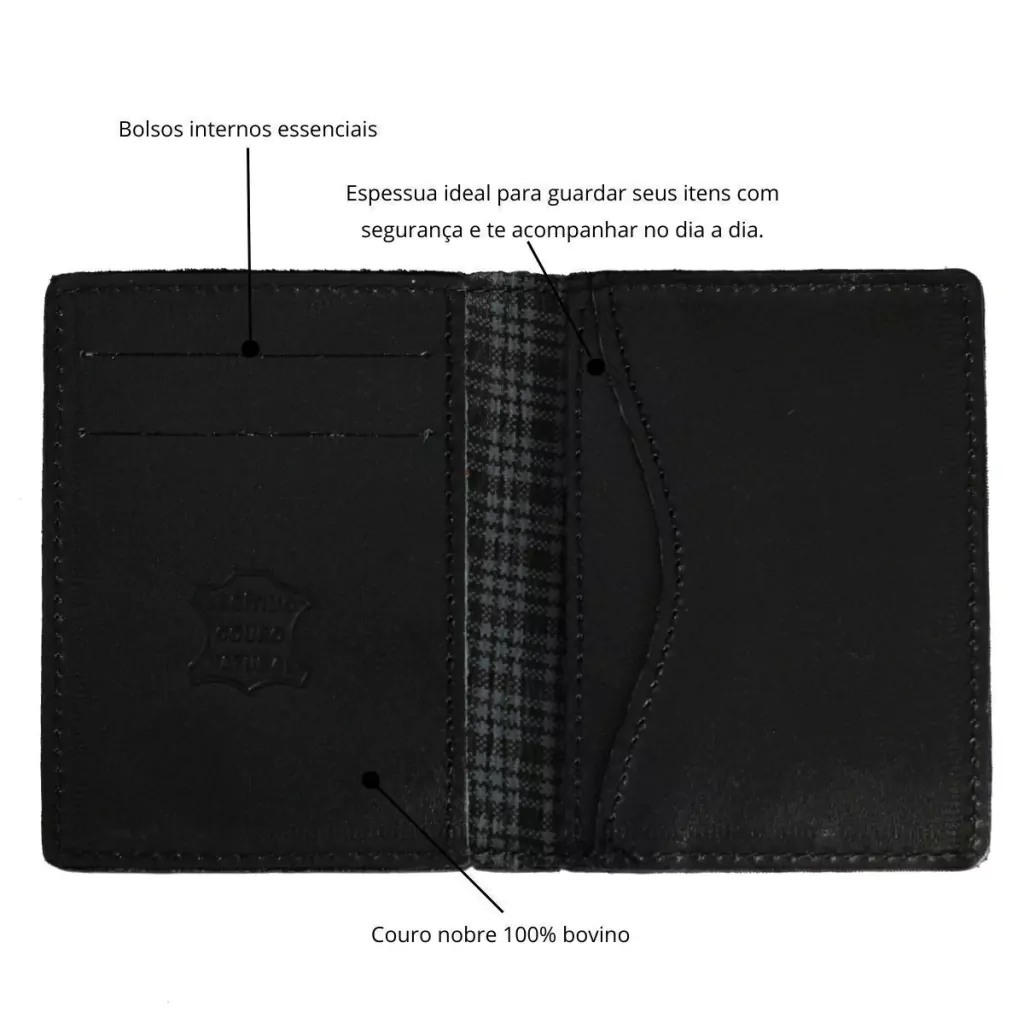 Experimente o luxo prático com a Carteira Chelsea da New Port. Em couro preto premium, é o tamanho ideal para cartões, CNH e notas. Organize-se com elegância e durabilidade. Estilo que transcende o tempo. Seu toque de sofisticação diária. A carteira ideal para o homem!